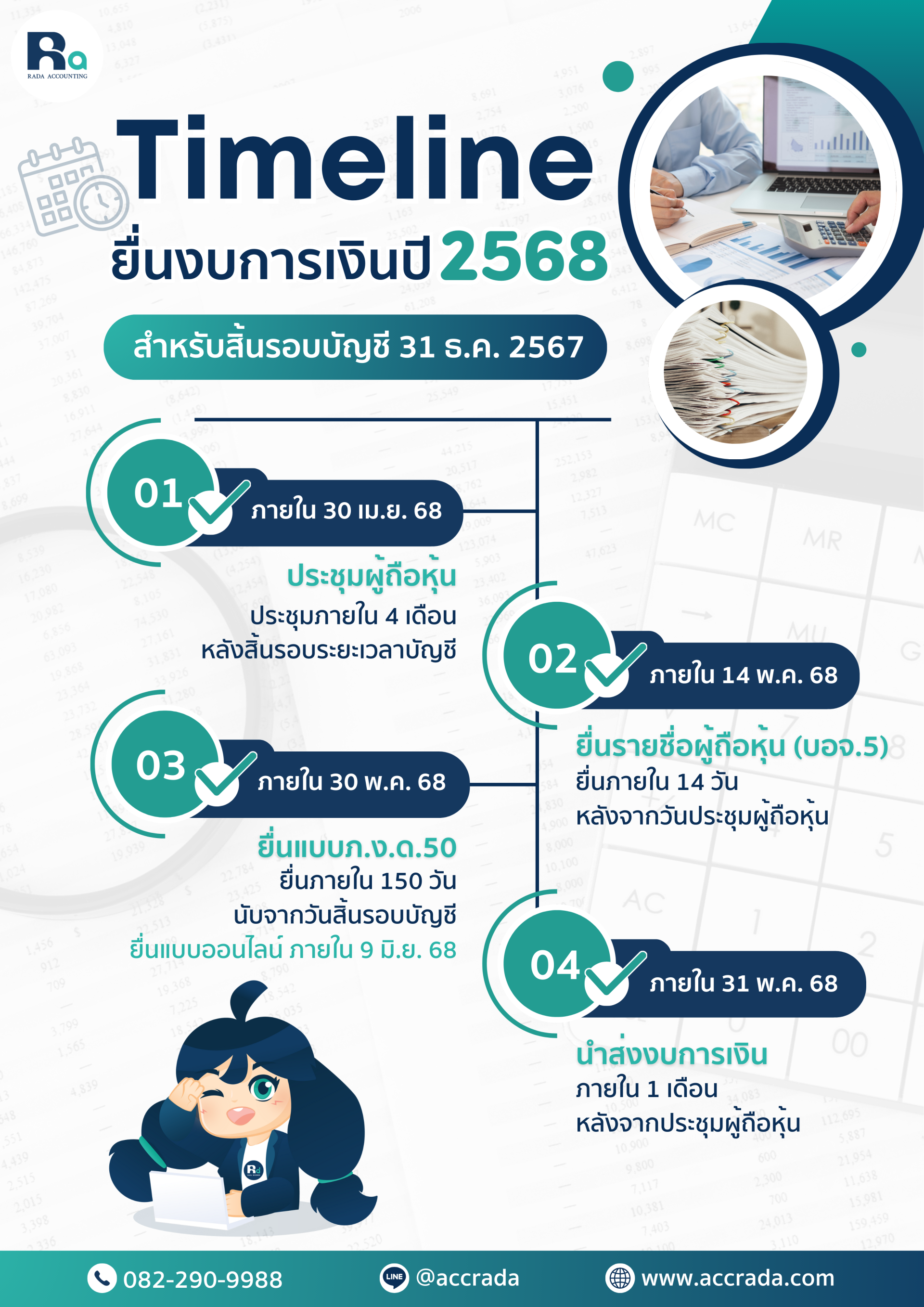 4. ยื่นงบการเงิน กับกรมพัฒนาธุรกิจการค้า ภายใน 31 พฤษภาคม 2568 (ภายใน 1 เดือน นับจากวันประชุมผู้ถือหุ้น)