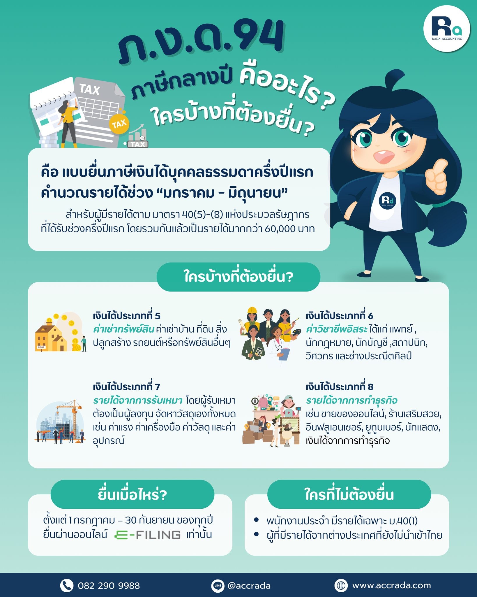- ภ.ง.ด.94 คือภาษีครึ่งปีแรกของบุคคลธรรมดา