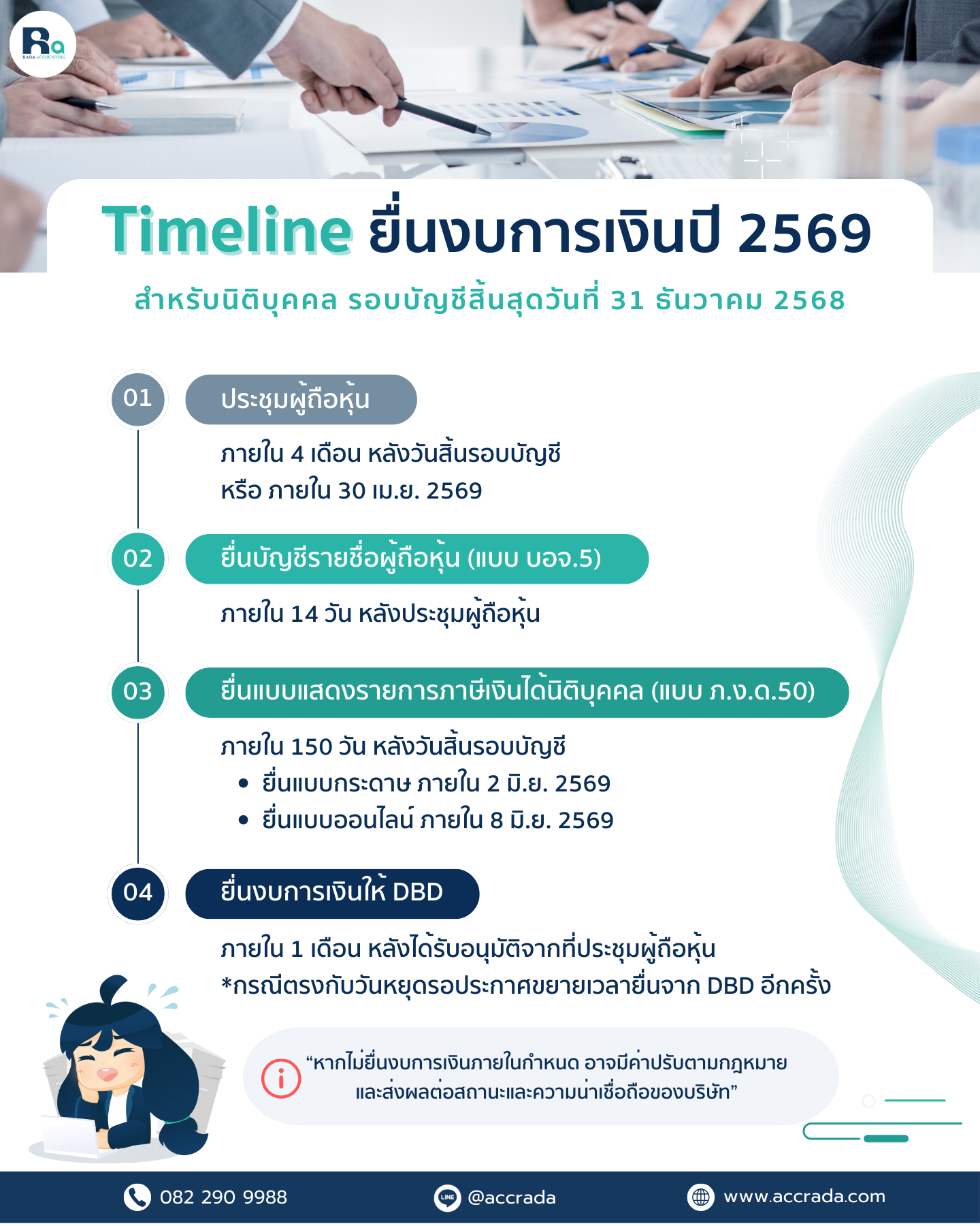 Timeline ยื่นงบการเงินปี 2569 (สำหรับนิติบุคคล ปิดรอบ 31 ธ.ค. 2568)